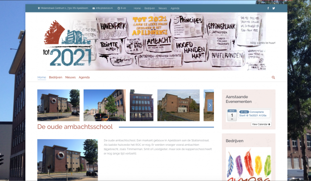 Tot 2021 opent haar deuren Na bijna een jaar van hard werken nadert Tot 2021 haar voltooiïng. Een mooie gelegenheid om te laten zien wat er binnen de muren van de oude ambachtsschool gebeurt. Alle huurders zetten hun deuren open en bieden de mogelijkheid rond te kijken, de sfeer te voelen en te proeven. U…